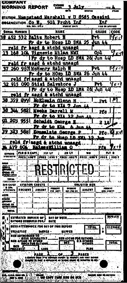 Darrell signed up for the draft on December 18, 1942, while still a student at the local high school in his hometown. The NARA archives did not have his enlistment records, but he was assigned to the 501st PIR.