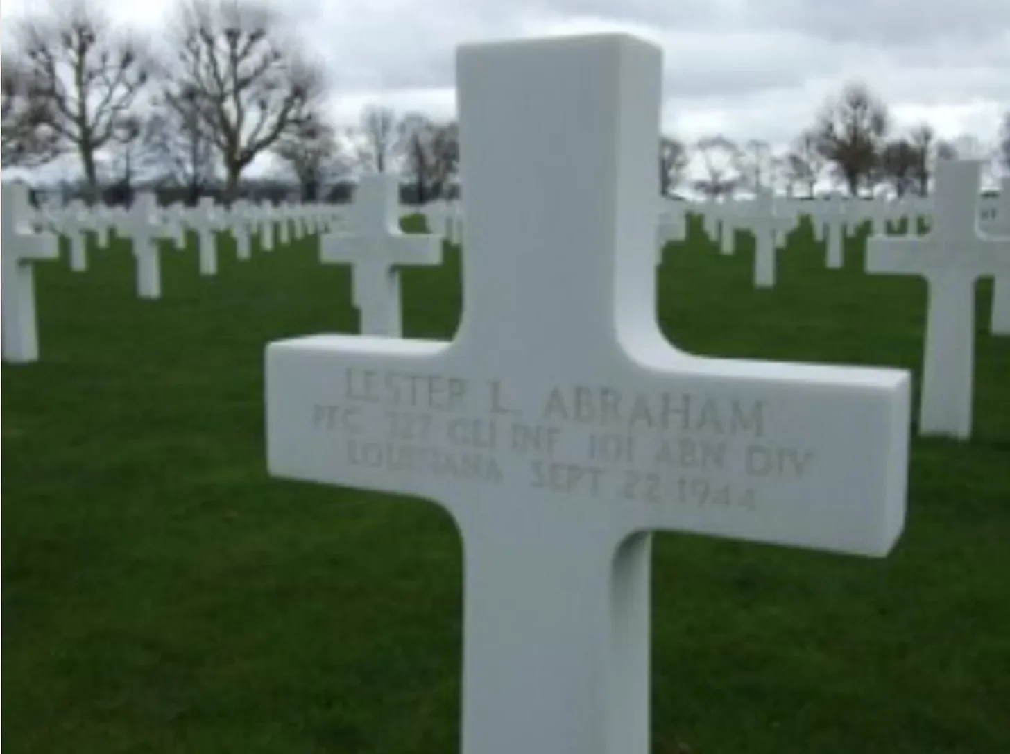 Private First Class (PFC) Lester Lockwood Abraham of the Medical Detachment, 327th Glider Infantry Regiment (GIR), 101st Airborne Division, was born in Mansfield, Desoto County, Louisiana, to Joseph J. and Beulah M. (Cox) Abraham on May 12, 1913. He had two sisters, Laverne E. and Isabelle T., and one brother, Leo H.J. Abraham.