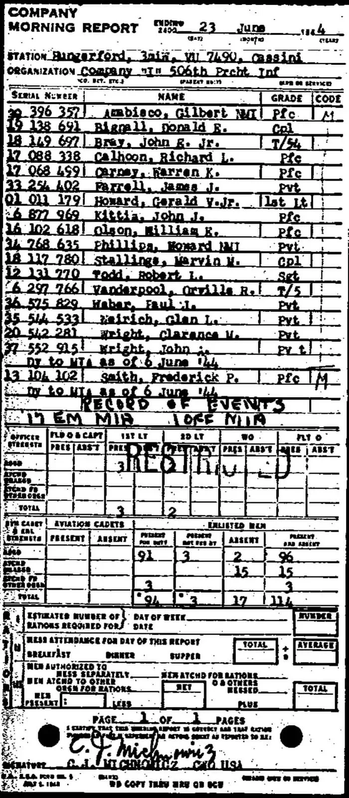 Item Company was hit hard that day as another plane (#42-100733; Chalk 24) was also lost. The aircraft had caught fire and crashed in the English Channel. Four paratroopers managed to jump out and survive, but the rest of the crew and other paratroopers lost their lives.